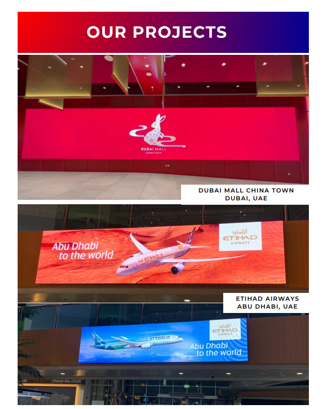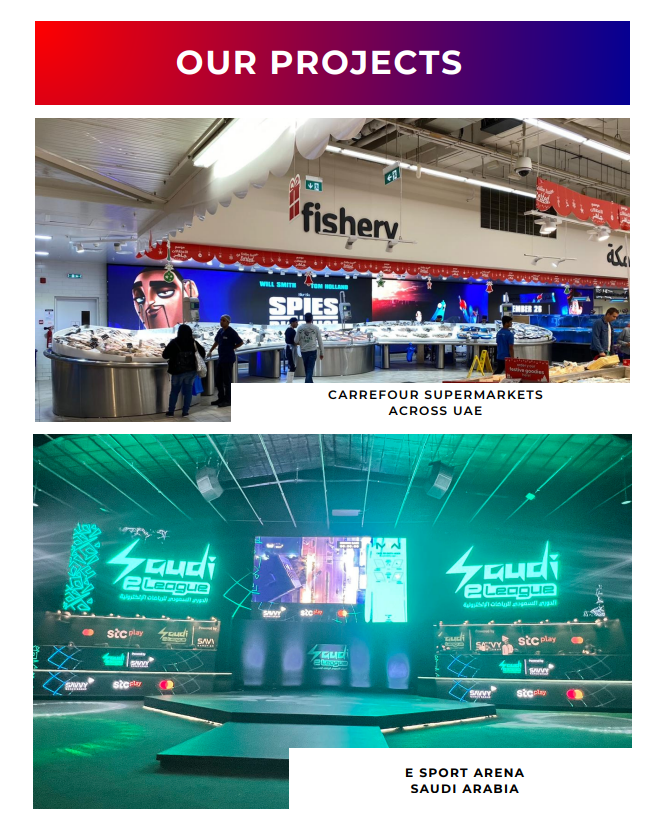 نوفّر أنظمة عرض متكاملة تواكب احتياجات الجهات التجارية والحكومية، وتضمن رؤية مثالية ووضوحاً استثنائياً في جميع الظروف